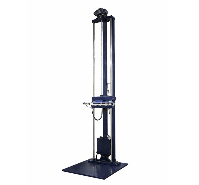 9) 釋放機構(跌落臂):跌落臂可左右兩側移動,兩側跌落臂釋放同步性≤0.1s,并具有自鎖功能,提升過程中不自行解鎖且不影響或阻礙產品跌落;100kg產品放到托臂上傾斜角度不超過3度。