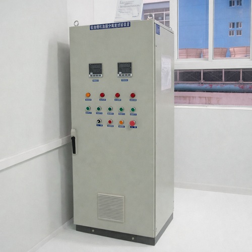 ②、主箱體由不銹鋼焊接制作,箱體內分成霧化室和均衡室。兩室之間用密封隔板隔開,被測吸油煙機安裝在霧化室的頂部,其出風口經密封后通到均衡室。