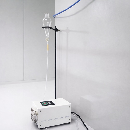 ⑤、霧化室內安裝噴射裝置及集液罐,噴射裝置在壓縮空氣的作用下,能夠將液態石蠟油噴射成霧狀,產生模擬油煙氣的氣體。