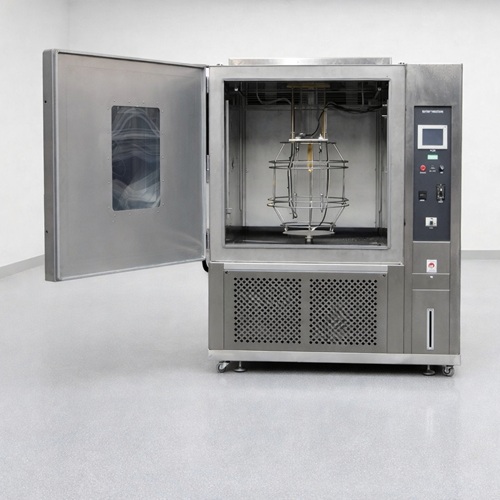 通過將被測材料暴露于受控高溫下光照與水份的交變回圈中,對材料進行測試.它用氙燈燈管模擬陽光的輻射作用,用凝結水和噴水來模擬露水和雨水本儀器只需要幾天或幾個星期的時間,就可以再現在室外需要幾個月甚.至幾年的時間才會發生的環境中的工況或各零件部件的老化等試驗室損傷,其中包括褪色、顏色變化、破裂、裂紋、起皺、起泡、脆化、強度降低、氧化等。