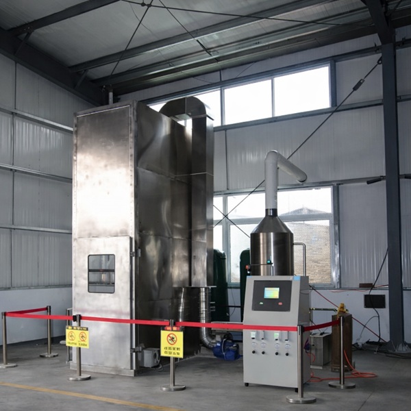 4、先進(jìn)的燃燒煙霧的收集和洗滌煙塵裝置:采用SUS304不銹鋼,直徑為800mm高度為3500mm。煙霧收集塔分為三部分:噴淋